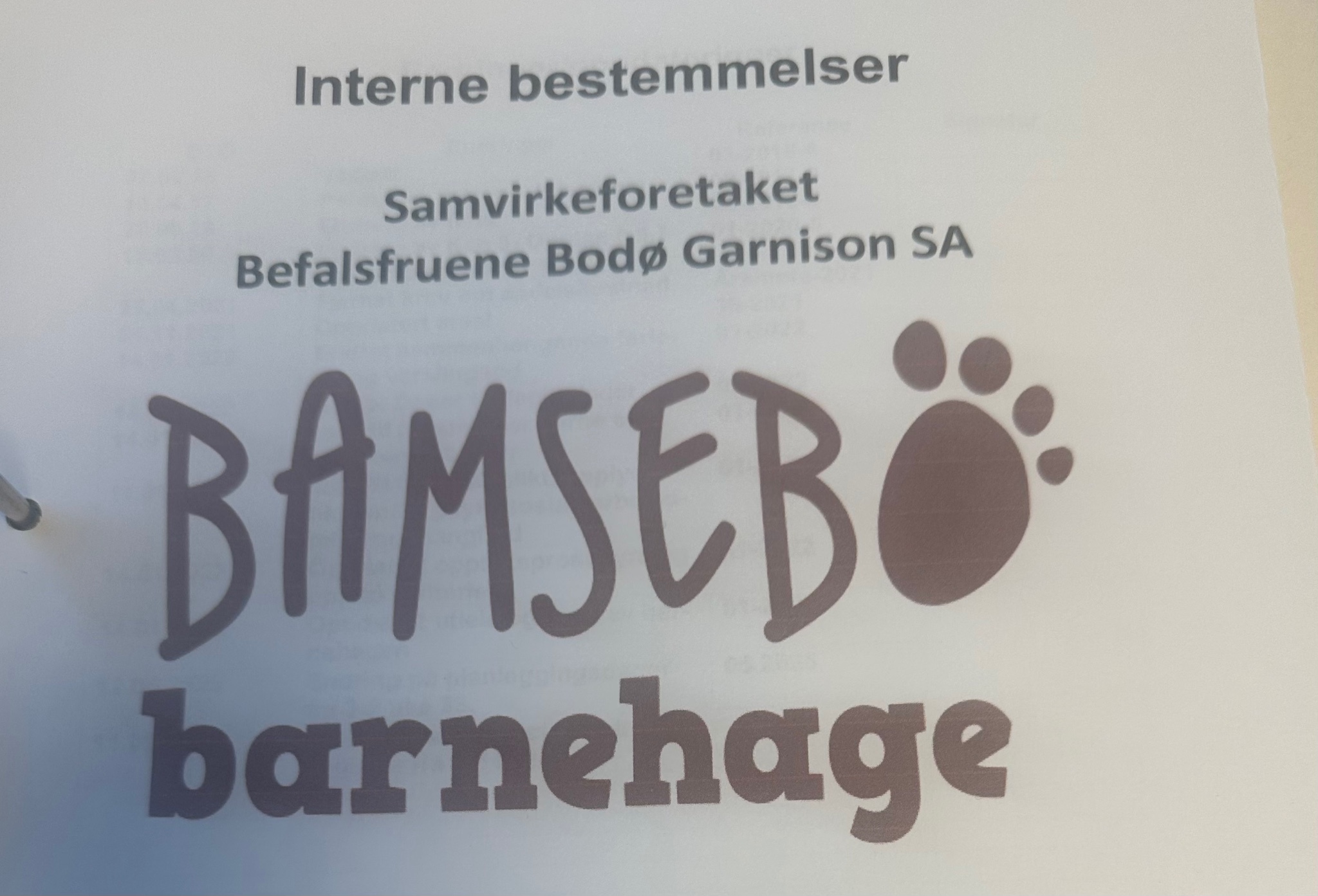 2025- Interne bestemmelser Befalsfrueforeningen Bamsebo barnehage
